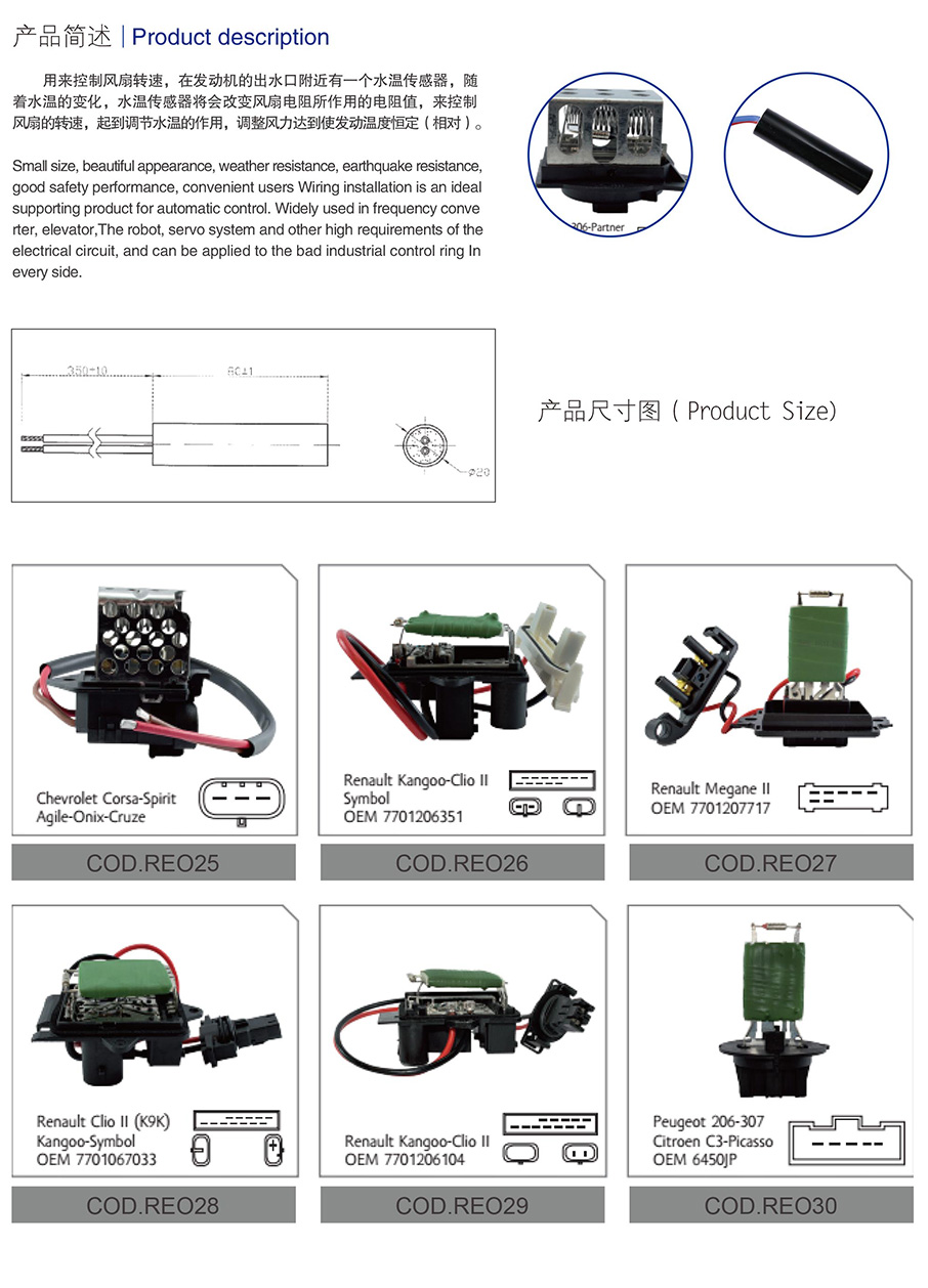 • 汽車風扇電阻器
